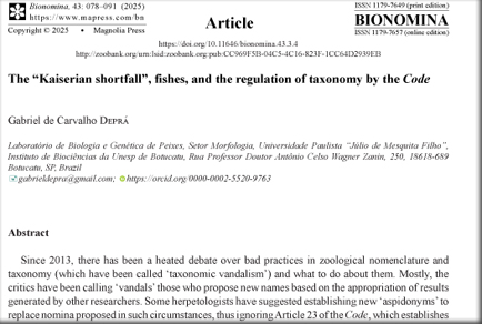- Dubois, A. (2025) Bionomina, opinion papers and nomenclatural Code-compliance. Bionomina, 41: 1‒19. <https://doi.org/10.11646/bionomina.41.1.1>.