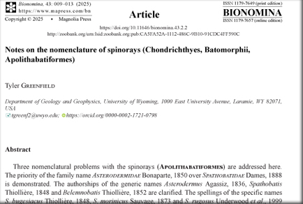 Notes on the nomenclature of spinorays (Chondrichthyes, Batomorphii, Apolithabatiformes)
