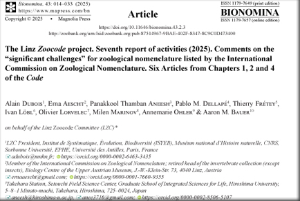 project. Seventh report of activities (2025). Comments on the “significant challenges” for zoological nomenclature listed by the International Commission on Zoological Nomenclature. Six Articles from Chapters 1, 2 and 4 of the