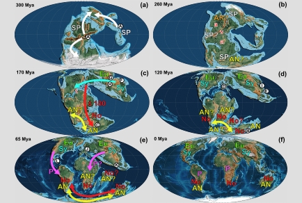 - McLoughlin, S. (2001) The breakup history of Gondwana and its impact on pre-Cenozoic floristic provincialism. Australian Journal of Botany, 49 (3), 271–300. https://doi.org/10.1071/BT00023