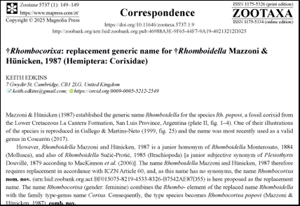 Mazzoni & Hünicken, 1987 (Hemiptera: Corixidae)
